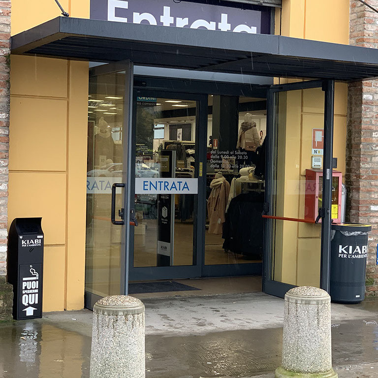Espositore di involucri per ombrelli in acciaio inox, con buste personalizzate Centro Nova Bologna